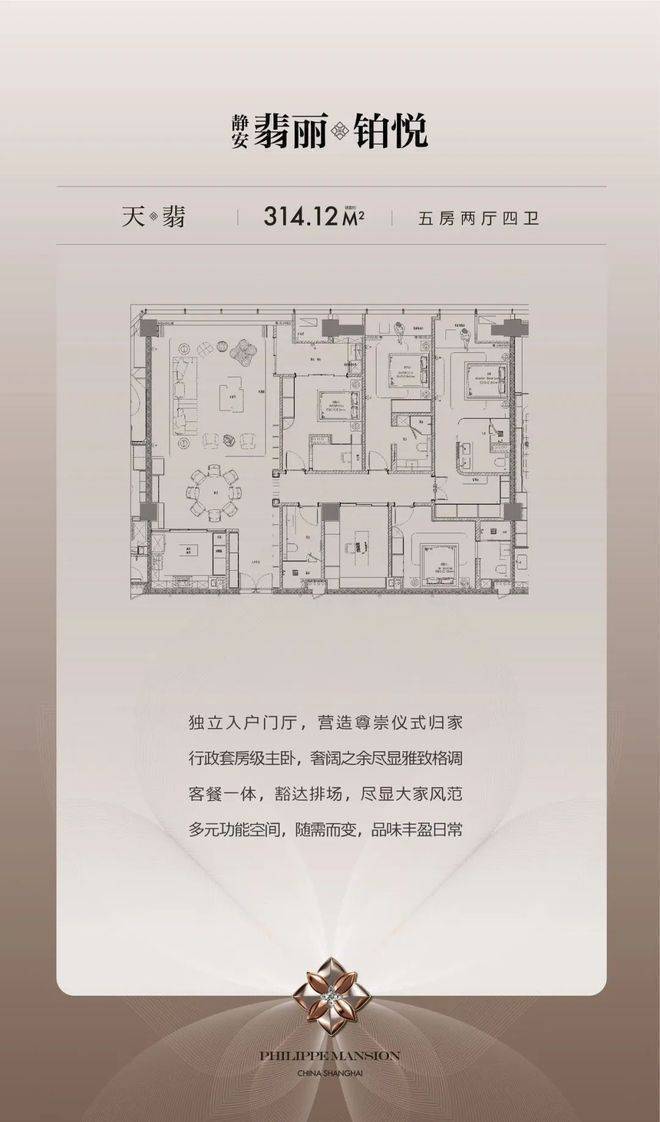 天翡户型:约314㎡|5房2厅4卫(独立入户+3套房)