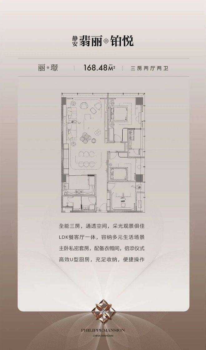 丽璟户型:约168㎡|3房2厅2卫(U型厨房)