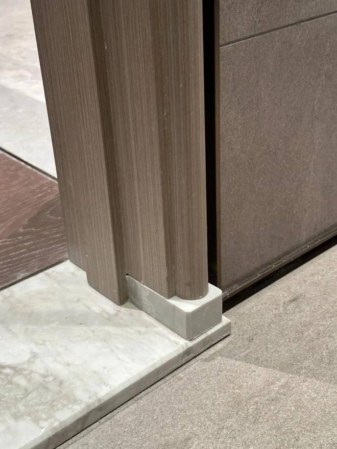 你们可以看下缦云上海是如何处理卫生间木门的防潮的—— 卫生间一侧用大理石做踢脚线,这是真正细致入微的巧思!