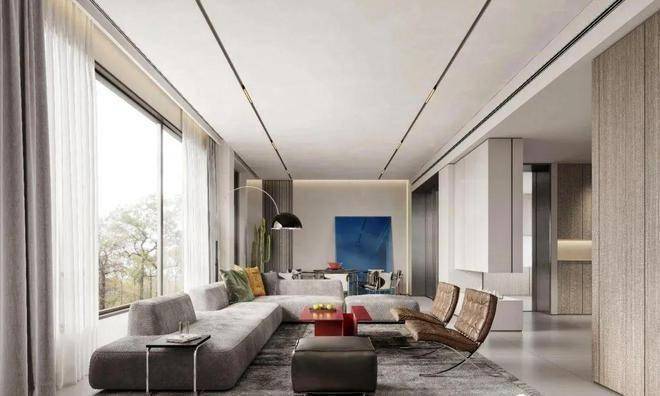 ▷在室内设计上,入户大堂采用二层挑空设计,高贵大气,凸显空间感,提升大平层的整体价值。另外,充分利用南侧联排区屋面绿化及景观绿化,将联排区的优良景观引入大平层,将景观利用率做到最大化。