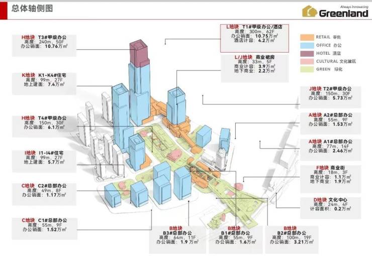其中4栋超高层,分别为300米、240米以及2栋150米塔楼组成。