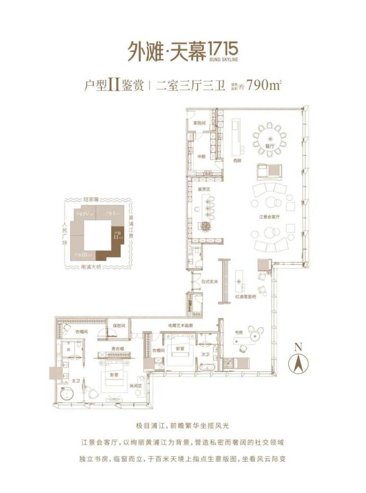 绿地·外滩天际,在外滩地标绿地外滩中心T1#300m超高层楼栋,标准层高约4.5m,主力户型面积约724-799㎡,以一种塔尖群体向往的融合式生活方式,诠释外滩滨江恒产的价值高度。于此,以王者视角,俯揽黄浦江,对望陆家嘴,尽享上海城市之曜。
