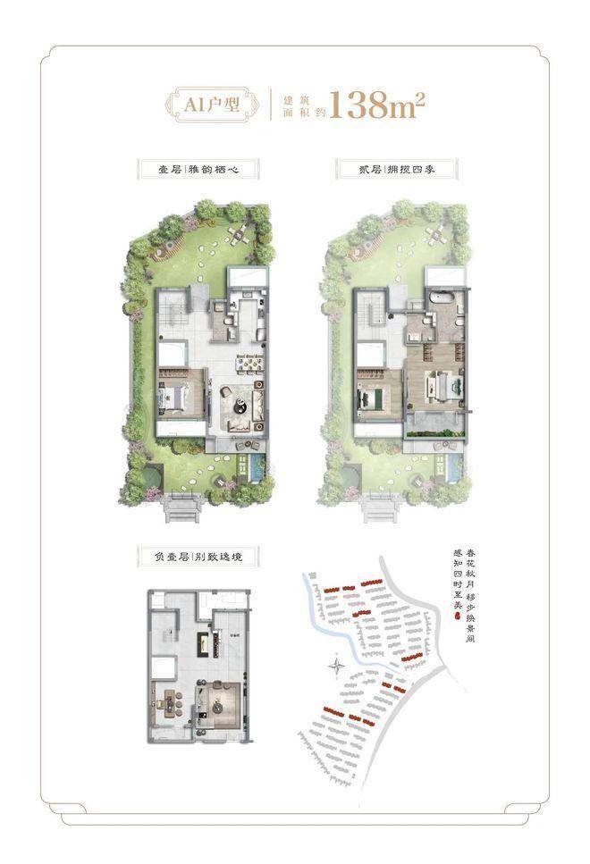 主力户型 138㎡4房2厅688万/套起 地下层高5.7米 围合式花园
