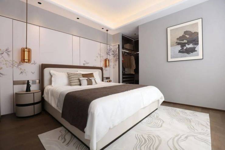 三层称得上是主人独立的“休憩行宫”了,一整层都是主卧!就寝区、衣帽间、卫浴间应有尽有,而且尺度还很舒适。