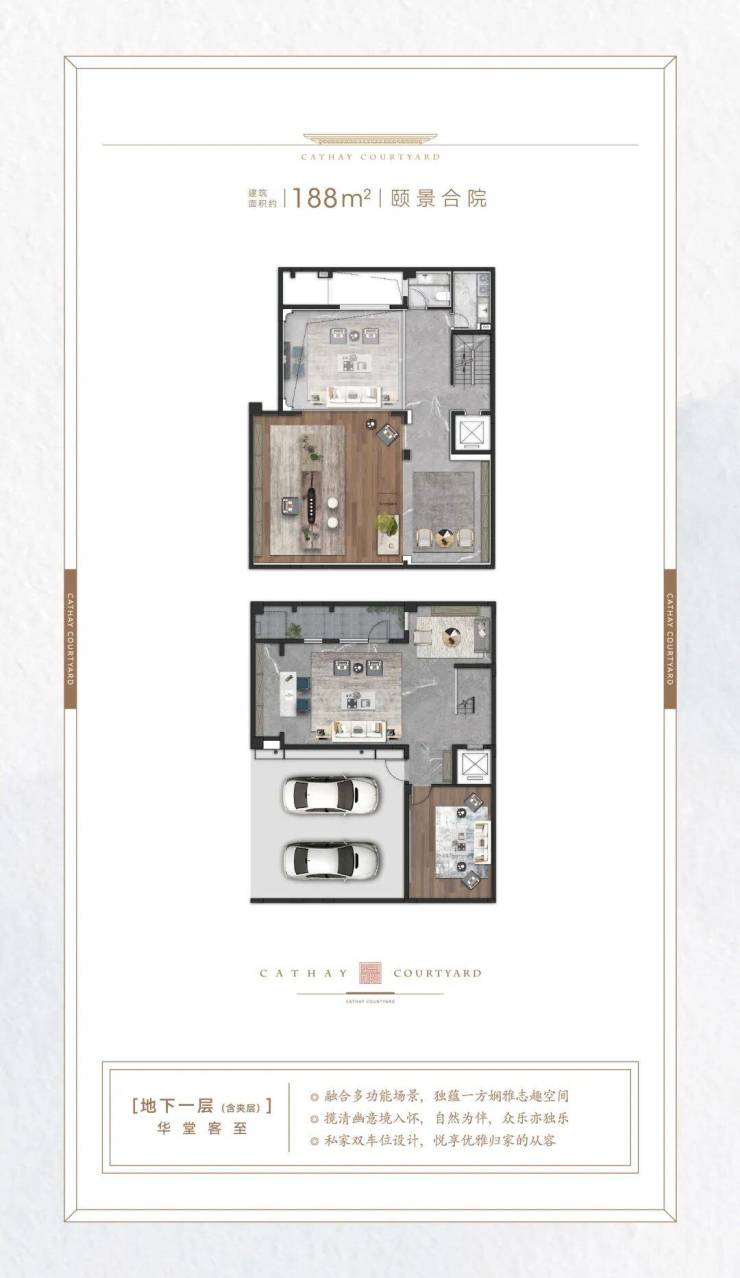 它实现了完整的“有天有地”,做到了地上2-3层+地下2层。不像叠墅,花园或露台通常只能二选一,营造了丰富的“垂直生活体系”生活。