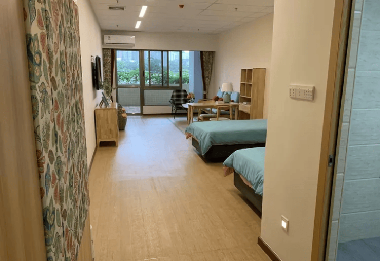 双人间:面积20-30平方米,采用分床设计,增设双控空调、储物柜及紧急呼叫装置,护患比达1:4,月费6800-8500元。