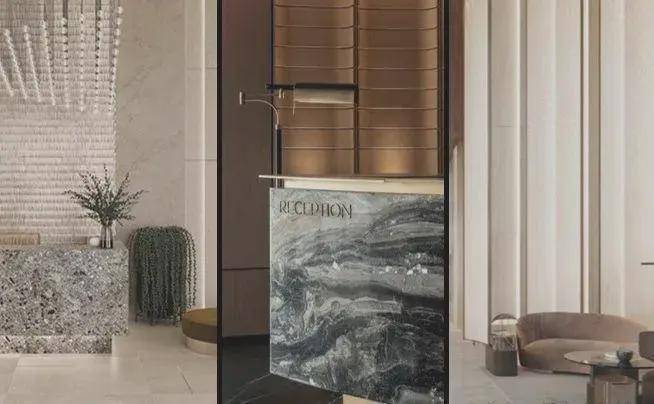 豪宅细节 重新定义空间品味: 使用稀贵的石材与设计美学相结合,实现空间美学的高级表达,最终完成空间的品质追求。大量复杂柔和的曲线形成诗意的律动,这亦是PARK699柏舍不动声色的奢华。