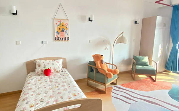 鲁坤养老院总建筑面积1.2万平方米,规划床位252张,涵盖单人间、双人间、套房及多人间等多种房型,满足不同长者的需求。所有居室均按照适老化标准精心设计,从宽敞明亮的空间到防滑地板,从无障碍卫浴到24小时紧急呼叫系统,每一个细节都体现了对长者的细致关怀。公共区域则设有阅读室、活动室、康复室、书画工坊、怀旧影院等多个功能区域,为长者提供了丰富的休闲娱乐和社交互动场所。