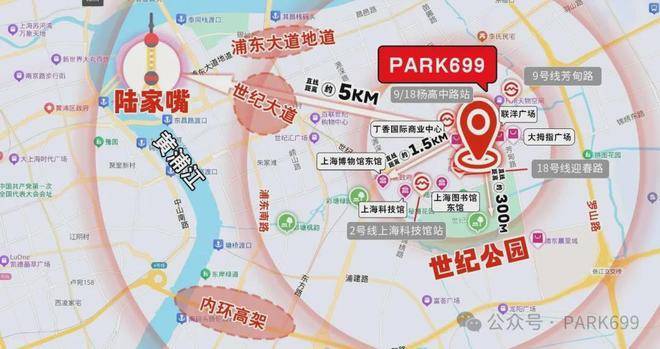 PARK699 位于上海陆家嘴金融贸易区,这可是公认的“城市 C 位地段”。它直面陆家嘴 CBD 天际线,仿佛能触摸到金融的脉搏;俯瞰140.3 公顷的世纪公园,如同拥有城市中的天然氧吧。周边浦东新区政府、海关、金融监管机构等行政资源环绕,还毗邻联洋国际社区,形成了“商务 + 政务 + 生活”三位一体的成熟都会圈。