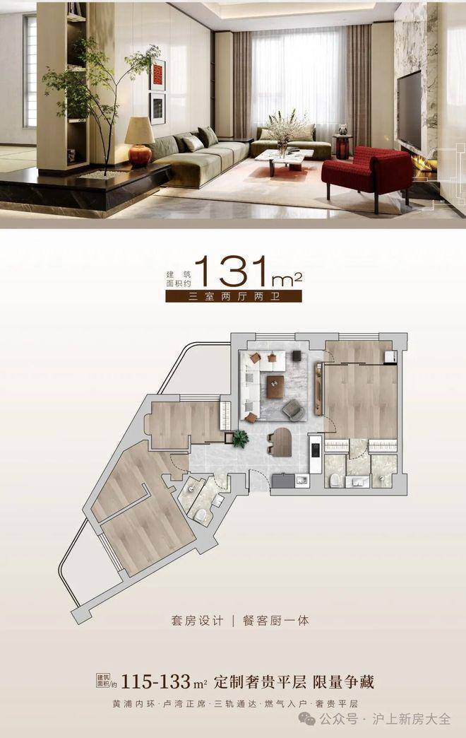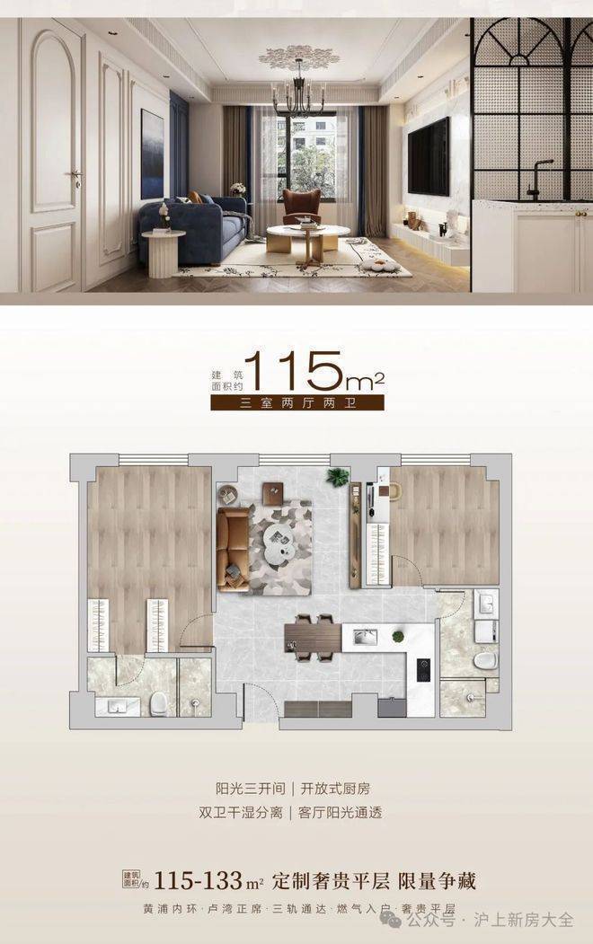 黄浦·滨湾】黄浦卢湾板块,通燃气大平层,115-133平奢装三房,鲁班路地铁口,3条地铁线,4梯6户,600万起买黄浦核芯