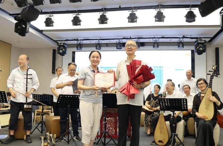 整场音乐会曲目丰富,演绎精湛,首首经典民乐流淌在社区空间,深深触动了在场每一位听众的心弦。这不仅是一次高水平的艺术享受,更是一次民族音乐文化基因的生动传承。活动最后,主办方运营负责人曹阳女士代表社区向乐团代表徐团长献上鲜花和荣誉证书,感谢各位老师们的精彩表演。