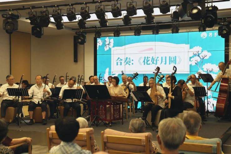 2025年7月16日下午,隽芳华长者社区特邀上海长宁区天山华韵乐府,为社区的长者们带来了一场主题为“民乐进社区 沁音隽芳华”的民族音乐会。