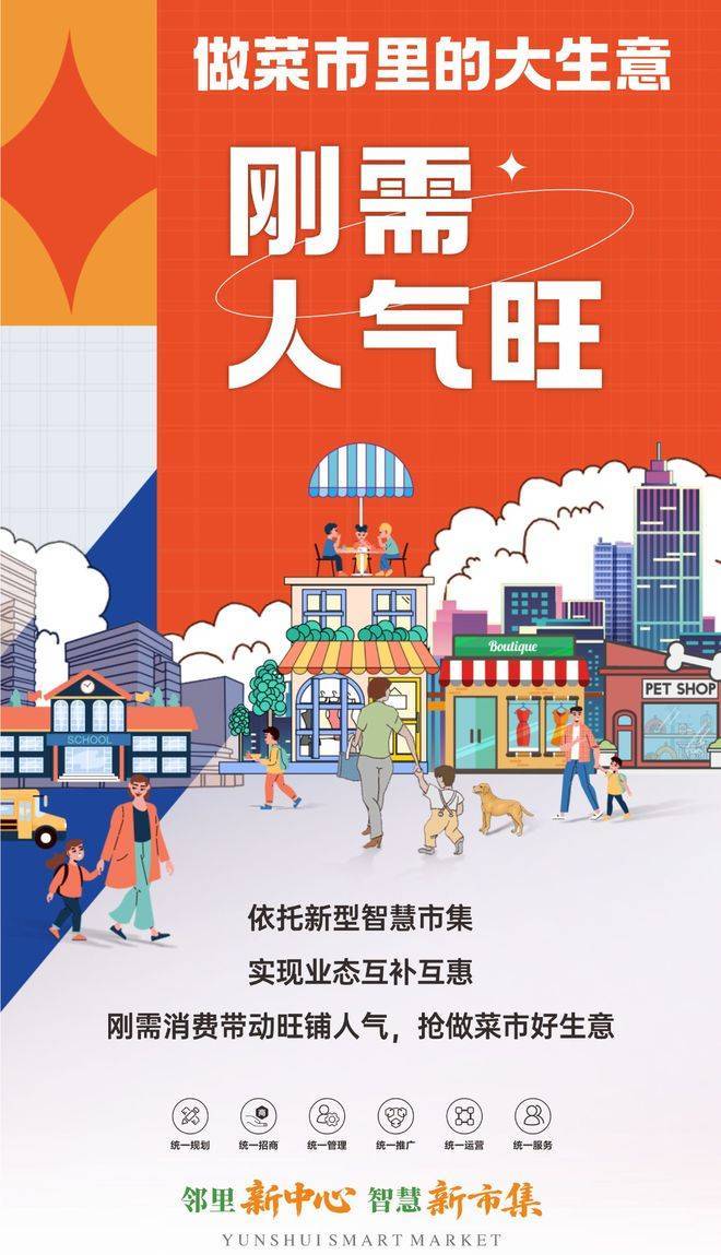 老旧农贸市场在新零售主导的现代零售业,环境和配套已经严重不符合当下农贸市场需求(整洁度,食品卫生,食品溯源,线上配送等这些老旧市场都不具备的)。项目定位为数字智慧化管理的现代农贸市场,我们项目从硬件上全面升级,智能中央空调、新风循环系统、智能排污系统,从购物环境营造星级体验。