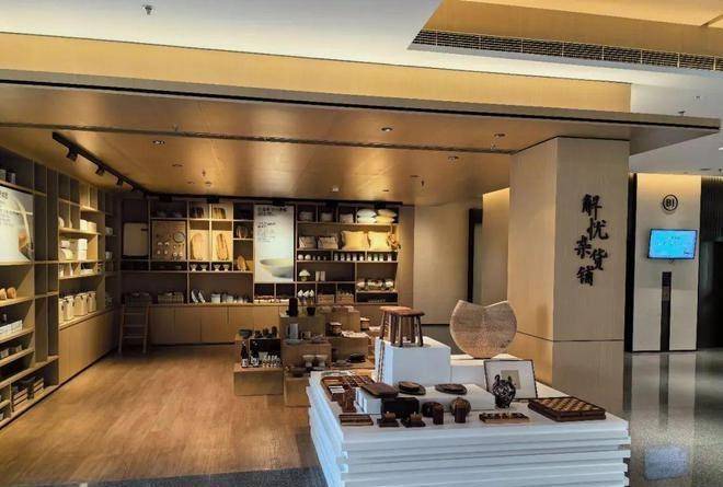 社区的建筑设计带有日式原木风格,在工艺品展示区,标上了“解忧杂货铺”的名字。