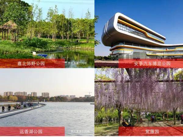 生态公园——嘉北郊野公园、安亭汽车博览公园、远香湖公园、嘉定紫藤园