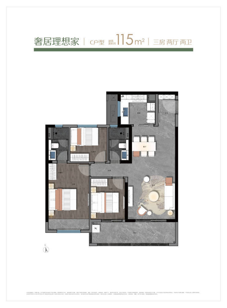 交付标准:精装交付,配备中央空调、地暖、新风系统三大件,可拎包入住