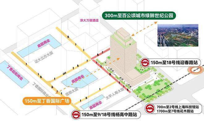 它与陆家嘴金融城直线距离仅约2公里, 地理位置上来说既规避了CBD的高密度压迫感,又能充分享受核心金融产业资源的辐射, 可谓是“大隐隐于市”。