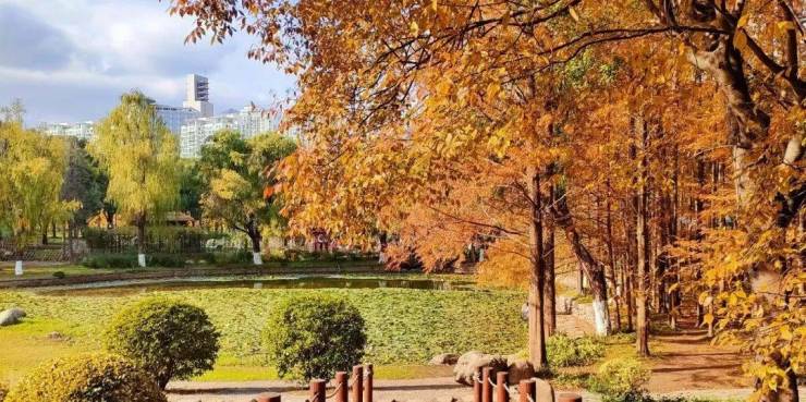 当樱花雨落满小径,银杏金毯铺展湖畔