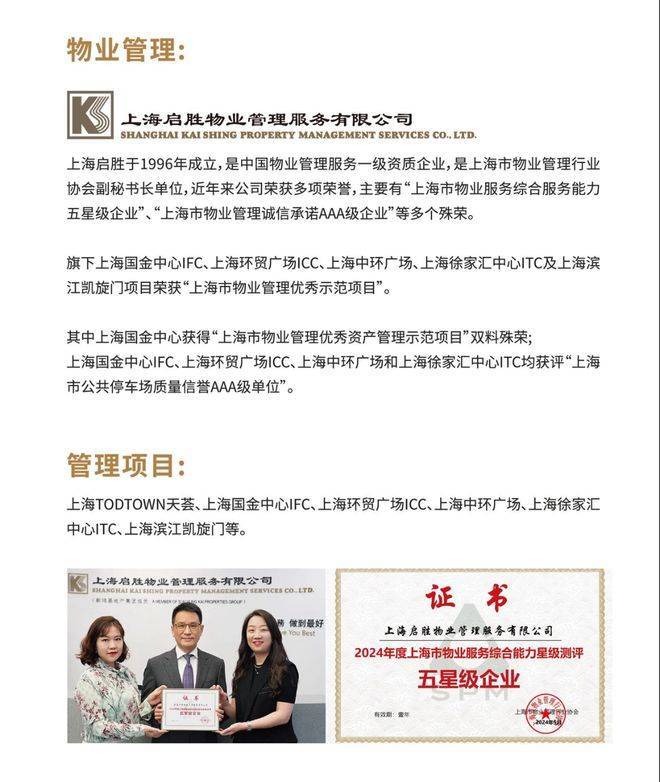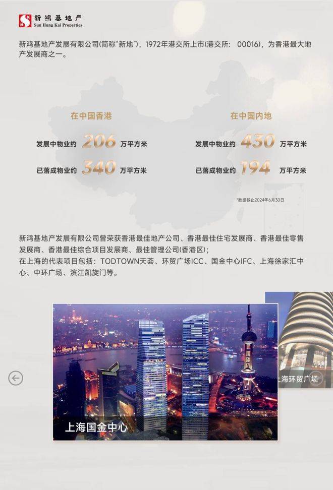 3.开发商实力雄厚:由香港新鸿基、上海城开共同打造,这些开发商在房地产领域经验丰富、信誉良好,保证了项目的品质和开发运营能力。