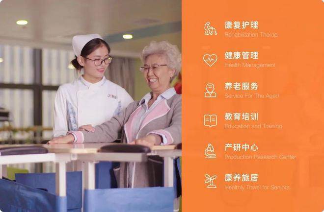 九如城率先推出医、康、养、教、研、旅相融合的特色服务,即康复医疗、健康管理、养老服务、教育培训、科研创新、特色旅居有机结合,以完善的医康养护资源体系和人才培养体系作为资源支撑,夯实科研基础,打造国内有影响力的康复技术科研及智慧养老平台,以六位一体的服务给予长者全方位关怀。