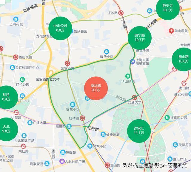 均价都在15W+!也因此,豪宅+老公房的组合,让整个新华路板块的二手均价都能拉到9W+,可以说板块价值已经是非常恒定了。