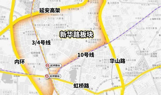 地铁方面,3/4号线在新华路板块设置了虹桥路站,另外在板块边缘还有个10/11号线的交通大学站,所以新华路板块可以说是受到4条轨交线的辐射利好。
