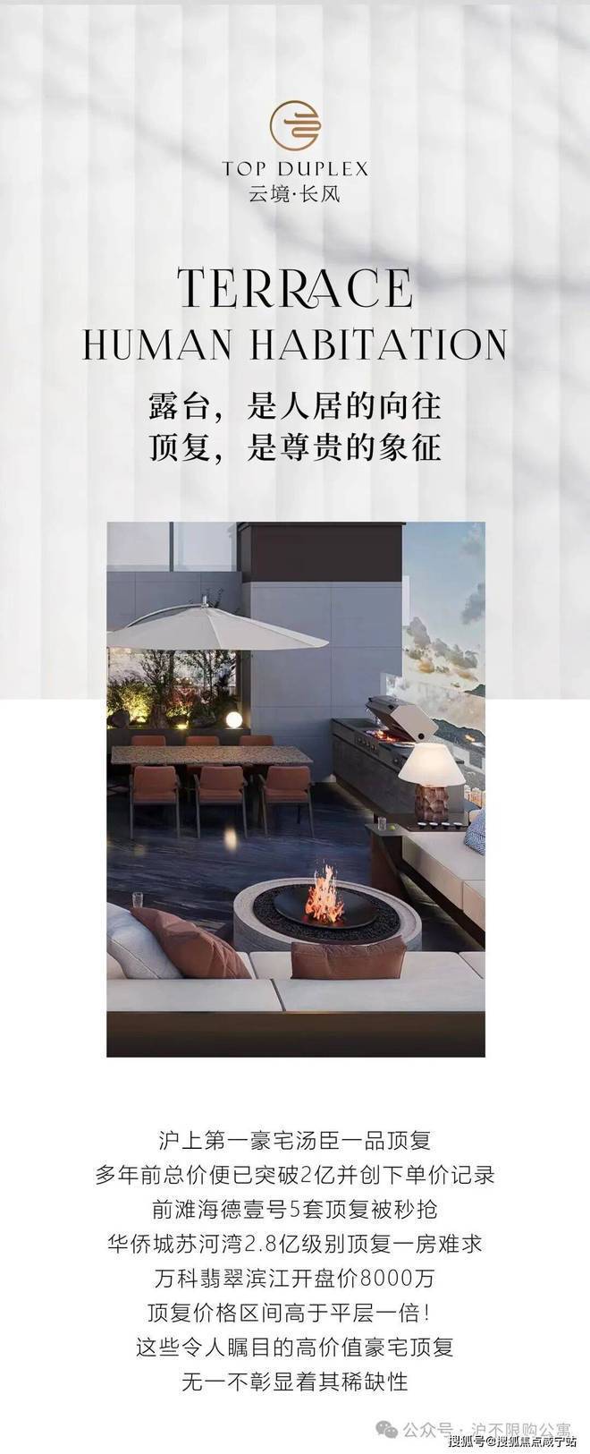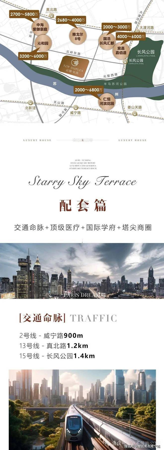 普陀长风公园整栋居住 送4个露台【云境 ·长风】面积336-341平空中小别墅挑高6米复式,通燃气 地暖 新风系统,小区绿化率45%