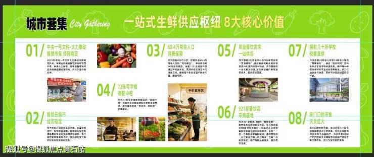 业态划分:肉类区(包括猪肉/牛羊肉/精品黑猪肉)、蔬菜区、海鲜水产区、豆制品、禽蛋区、熟食区、综合业态等