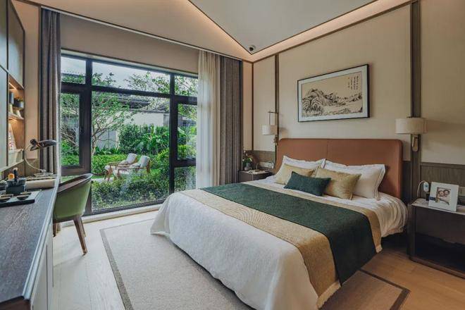 别墅坡屋顶约3.8米至高层高,赋予室内开阔和气派之感。北侧暖阳空间可化身书房或茶室,阳光透过屋顶洒入,光影交织,如梦如幻。客厅餐厅一体化,客厅、主卧和次卧向阳面宽超14米,视野开阔,尽享暖阳与美景。室内空间融入隐老化设计,全方位保障长者生活便捷与安全。