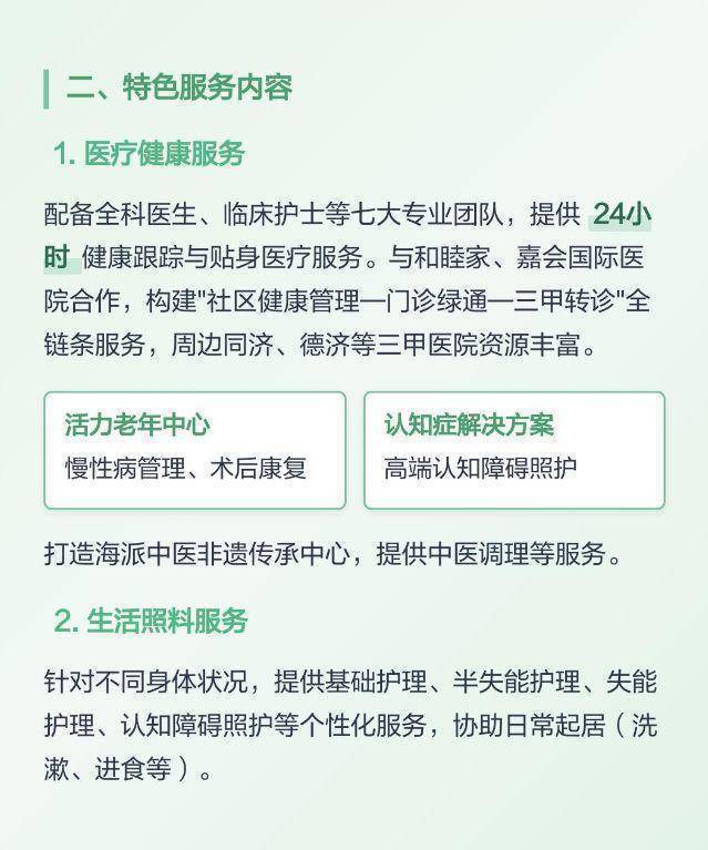 机构特色 : 为不同健康状态的住户提供全周期一站式养老及医疗服务