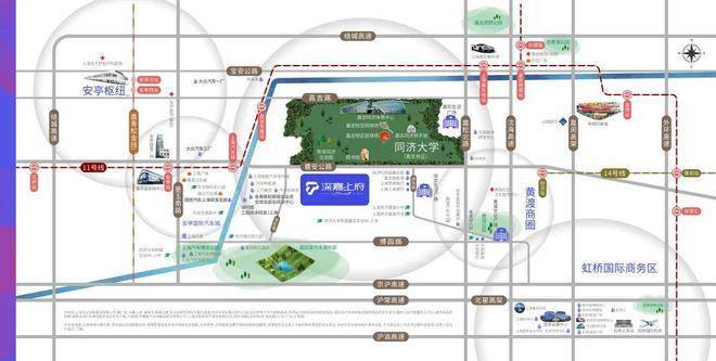 项目位于曹安路,为东西向重要干道四通八达,快速接驳沪嘉高速公路、沪宜公路、外环高速公路、中环路等多条黄金动脉链接市区及周边城市;本案距离地铁11号线上海汽车城站约3.5KM,快速高效通达市区。