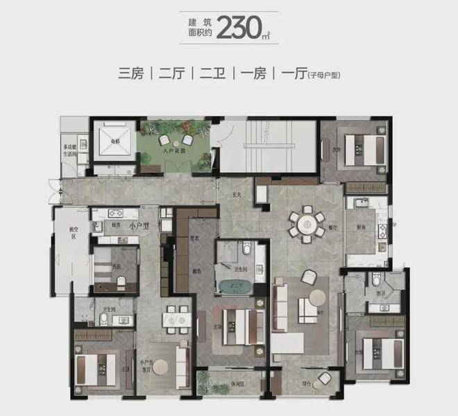峰度天下双入户大堂,B1层车库入户门厅,全车库环氧地坪,门厅星空吊顶,一梯一户大平层,160㎡四房二厅二卫,客餐橱一体;172㎡四房二厅三卫,南向奢华四开间,南北通透客餐厅,动静分离;230㎡六房二厅三卫,南向奢华五开间,罕见三套房设计;230㎡子母户型,三房二厅二卫+一房一厅一卫,南向奢华五开间,既要大家庭的其乐融融,又要小家化的私密空间。