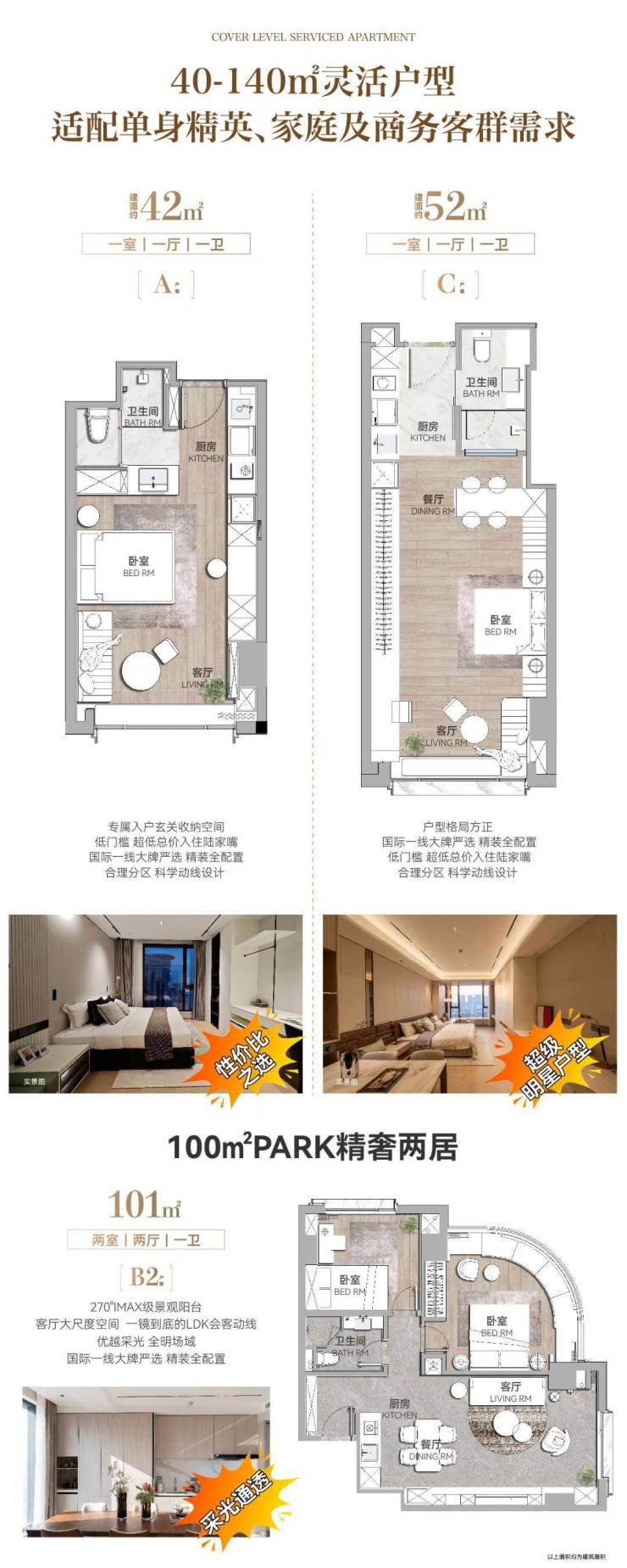 租赁市场硬通货:精准匹配金融白领、外籍高管需求,40㎡户型月租金预估可达近万元,远超住宅的市场均值。