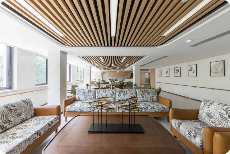 国投健康嘉栖长者公寓总建筑面积 5772㎡,以 “自立支援” 为核心理念,融合适老化、智能化与自然景观,在越秀城心打造 “离城不离尘” 的颐养环境,所有空间均按国际适老化标准设计,实拍亮点如下: