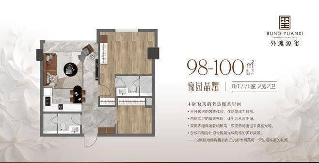 户型面积98-110平米,外滩之畔,金陵东路,豪华不限购公寓