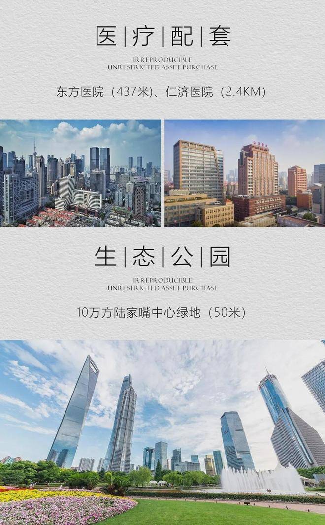 生态休闲:周边林立各类知名景点和生态公园,楼下即是陆家嘴中央绿地(5A 景区)、梅园公园、浦东滨江大道(公园)、东方明珠举步即达;知名三件套:上海中心、金茂大厦、全球金融中心对望、吴昌顾纪念馆、上海海洋水a族馆等旅游景点近在咫尺。