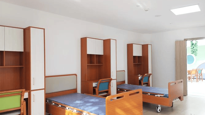 居住空间:提供单人间(18-30㎡)、双人间(25㎡)两种主力房型,均采用朝南设计,确保充足采光。房间内配备护理床、空调、电视等设施,双人间采用分区储物柜与隔音玻璃隔断,兼顾社交需求与隐私保护。