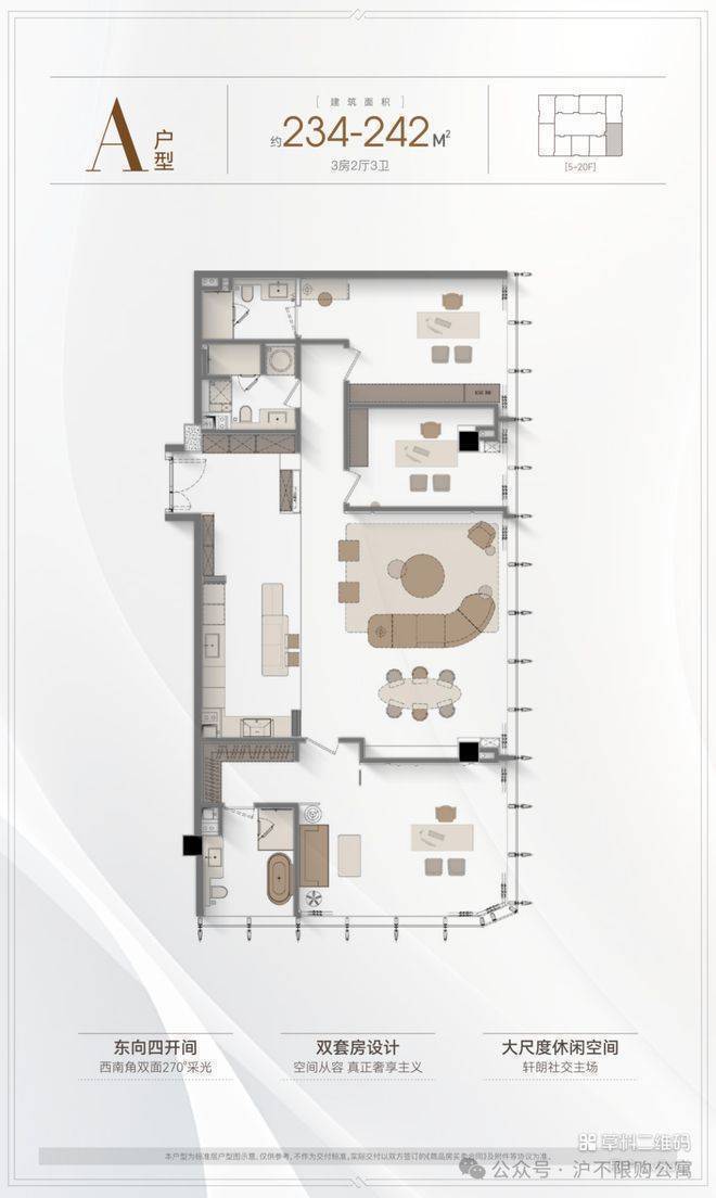 5️⃣户型优势:4.2米层高,全落地窗设计,多套房设计满足三代同堂