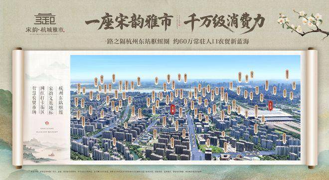 项目位于上城区城东新城核心区,是杭州知名板块,上城区一直是杭州核心主城区、也是南宋文化、吴越文化、钱塘江文化的重要承载地和南宋皇城遗址所在地!上城拥有全杭州超过一半的历史建筑、历史地段、历史街区和各级文保单位(皇城遗址、西湖十景、河清坊等),为上城区留下了厚重的宋韵文化积淀!正是我们打造"宋韵杭城雅市"的文化根基!