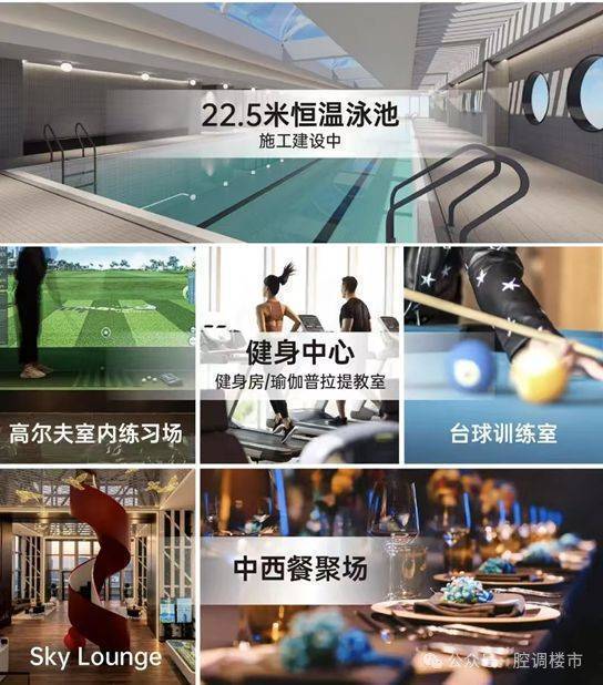运动健康:22.5米恒温泳池(玻璃穹顶引入自然光)、室内高尔夫模拟系统、健身房等;