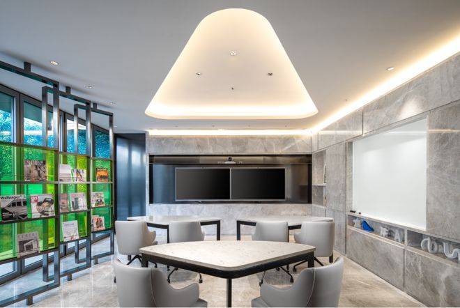 首层大堂约9米的超高挑空, 设立了礼宾台及休息会客区,尊崇感十足.项目由新鸿基启胜物业提供了港式高标准的物业服务,包括管家、客服、24小时云端安防,以及各类定制服务.