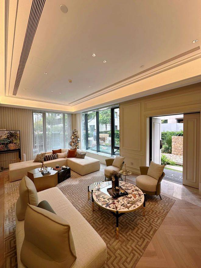 在室内设计上,入户大堂采用二层挑空设计,高贵大气,凸显空间感,提升大平层的整体价值;另外,充分利用南侧联排区屋面绿化及景观绿化,将联排区的优良景观引入大平层,将景观利用率做到最大化!