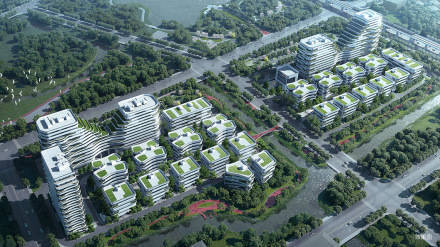 MAX科技园(上海·美兰湖)总占地约66095㎡,总建筑面积约215447㎡(地上计容面积167213㎡),容积率2.5,以“美兰湖生态绿谷”为设计理念,融合内外双景,缔造由建筑、景观、商务、自然构成的生态立体式办公系统,形成有机流动、向上生长的总部空间,铸就高层研发楼、独栋总部办公楼、商业商务配套、园区运营配套、人才公寓复合型创新园区