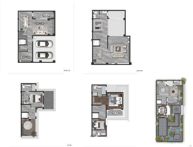 约126㎡的明星户型做到了5套房设计,地下一层、地上三层的空间形 态,将空间尺度无限放大。