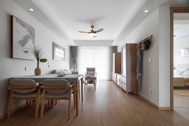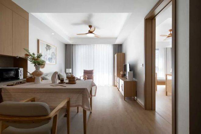 房间均为南向,精装修,配备全套家具、家电。室内整体采用原木色设计,布置很温馨。