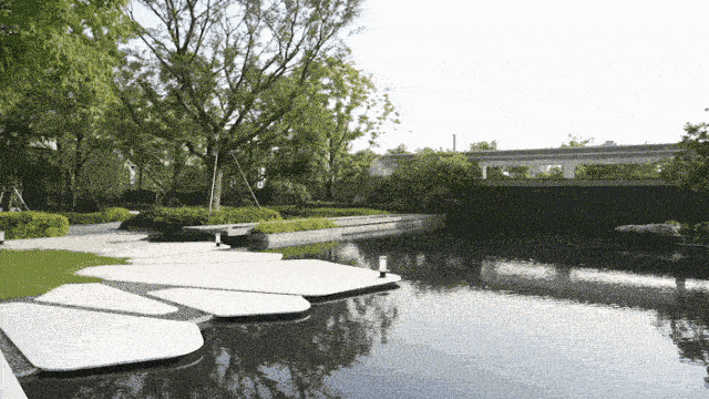 蜿蜒曲折的园路让人仿佛穿越在山水画卷中,水景如镜,豁然开朗,如同长卷展开,映水卷营造了一个精致优雅的景色,天光云影、花草树木、光屏与建筑的倒影在水面上交相辉映,令人陶醉其中。人们漫步其中,感受自然与建筑的完美融合。水面的映衬赋予空间更深厚的层次感,仿佛将人们带入一个神奇的世界。空间感由此延伸。工作之余,水畔驻留,心旷神怡。