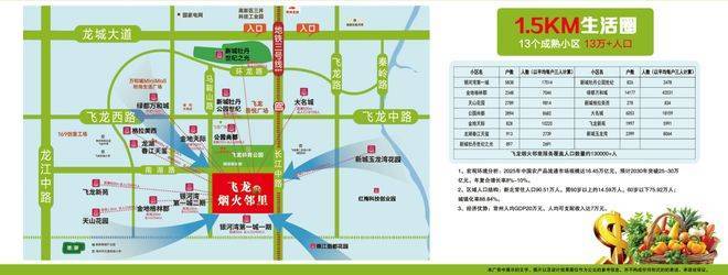 产品特色介绍:市场上在售持证正规农贸市场,飞龙烟火邻里总建筑面积约3300多平方,由20个环岛铺和周边30余个边铺组成,业态丰富且分布合理,其中不仅包含蔬菜、水果、豆制品、肉类、禽蛋、水产海鲜、熟食、凉拌菜、酱菜、干货等,还有健身房、儿童乐园、社区医院、餐饮加工等业态。