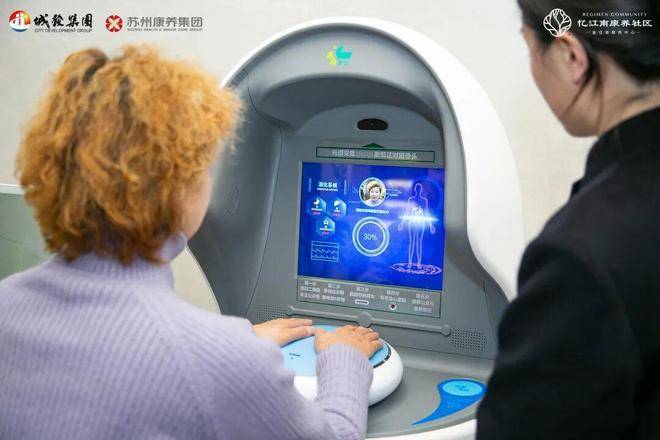 ④配备健康小屋,内设有健康一体机、健康机器人、中医经络检测仪、眼底筛查等智能检测设备,全面检测包含人体成分、体温、血压、血氧、心电、总胆固醇等在内的“人体循环系统、呼吸系统、免疫系统······”等十大系统,判断人体功能,为健康预警。