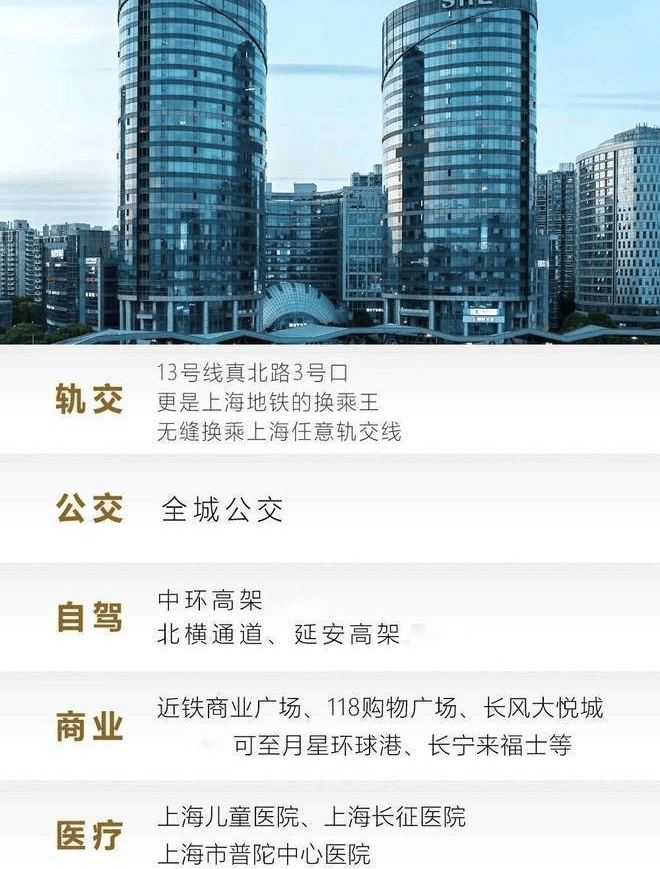 项目地处普陀区金沙江路与真北路段,中环线交界处,属于长风商务版块核心区域,与虹桥商务区隔河相望,近大虹桥经济商务圈和长风高端居住区,作为大虹桥内靠近市中心的板块,本案属于虹桥经济体,于市中心区域内,区域规划优势强,是市中心一块整体规划的高端商务区。