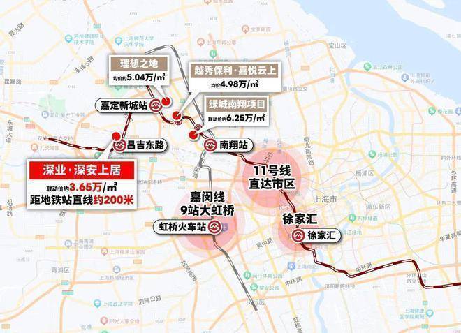 通过11号线,本项目2站即可直达嘉定新城,4站南翔印象城,11站真如副中心、17站徐家汇!